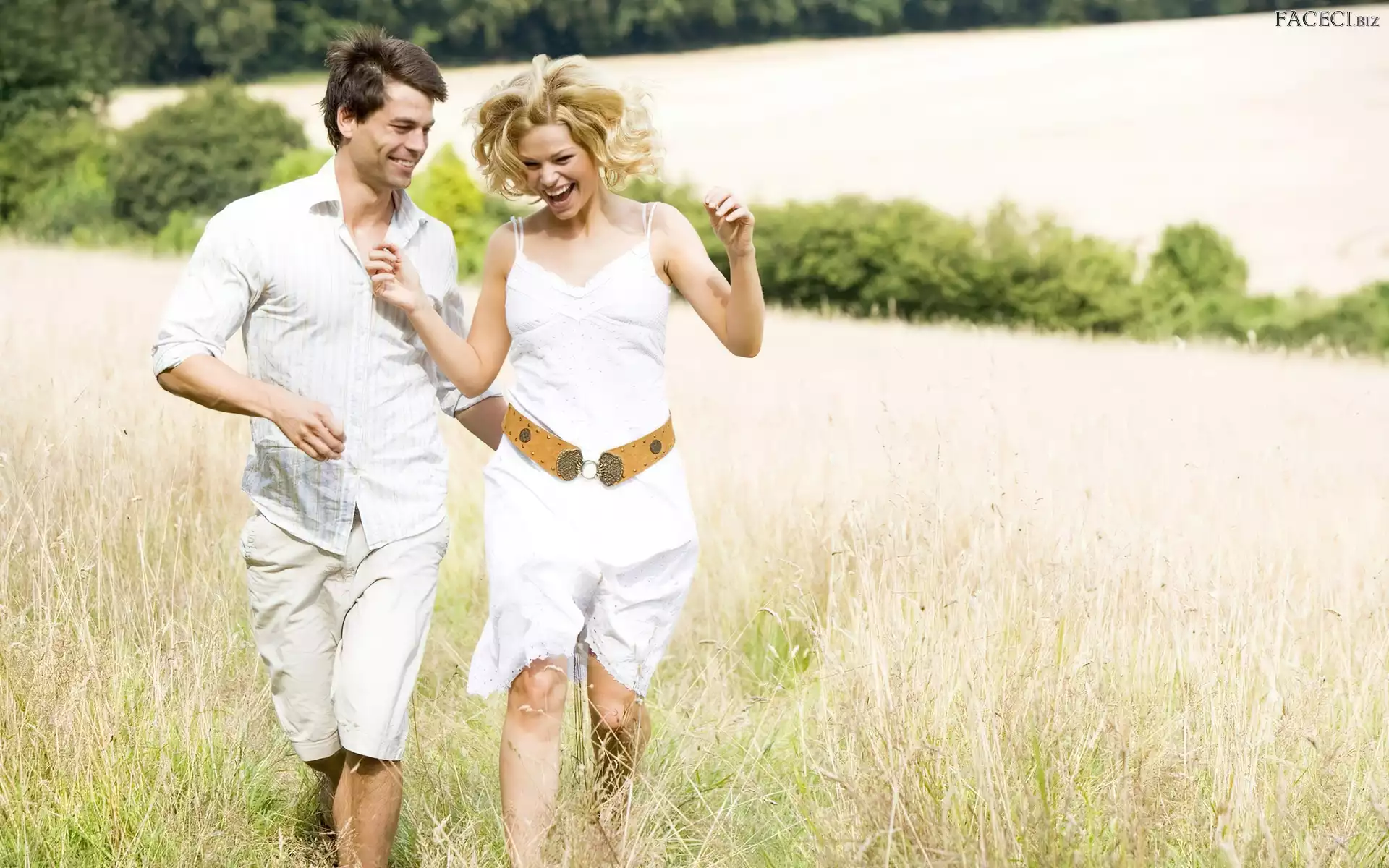 Kobieta, Trawa, Mężczyzna, Radość - faceci.biz